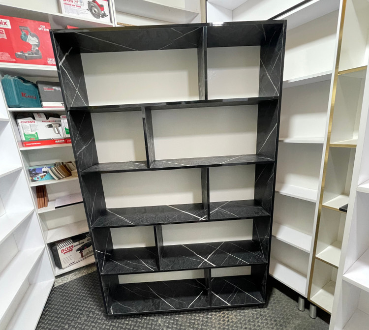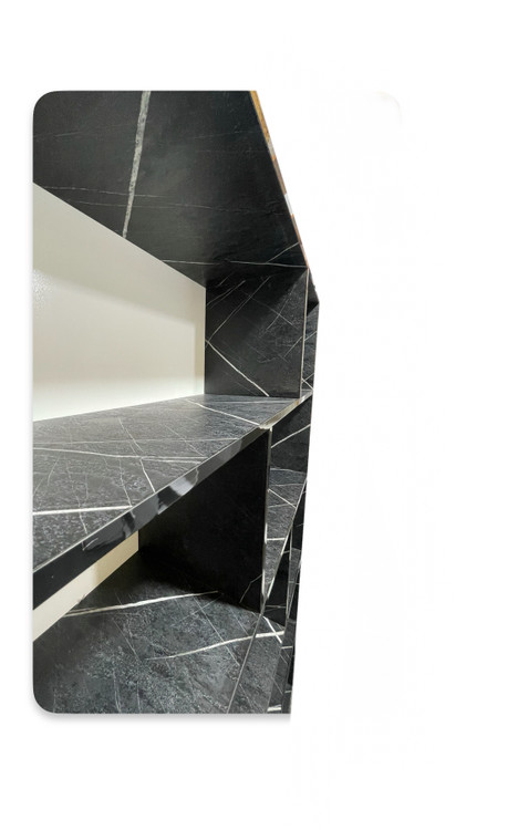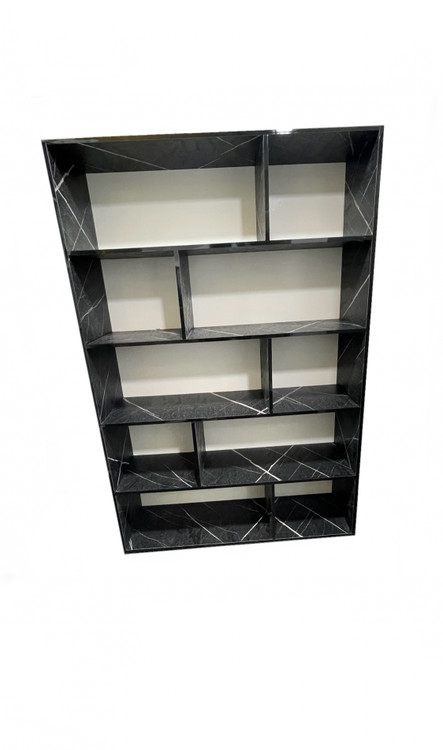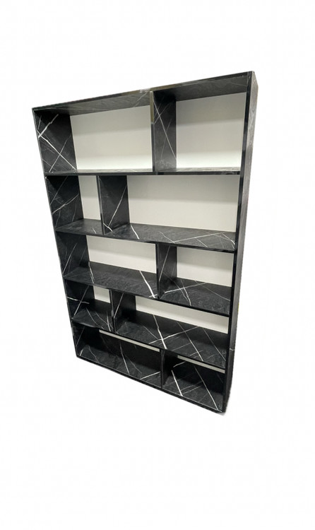 قفسه و کتابخانه پنج طبقه با طرح سنگ مشکی برجسته – عرض ۹۰، عمق ۳۰، ارتفاع ۱۹۰ سانتیمتر – خاص، دکوراتیو و مناسب فضاهای لوکس