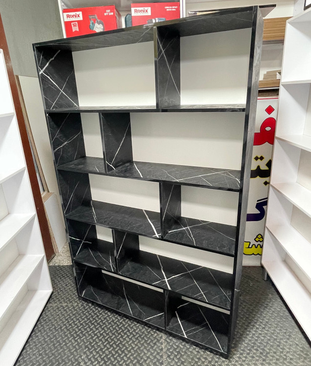 قفسه و کتابخانه پنج طبقه با طرح سنگ مشکی برجسته، یه گزینه متفاوت برای کسانیه که دنبال زیبایی، خاص بودن و نظم در کنار هم هستن. این مدل با طراحی خاص و بافت برجسته روی بدنه، حس لوکس و مدرنی رو به فضای خونه یا محل کارت میده.