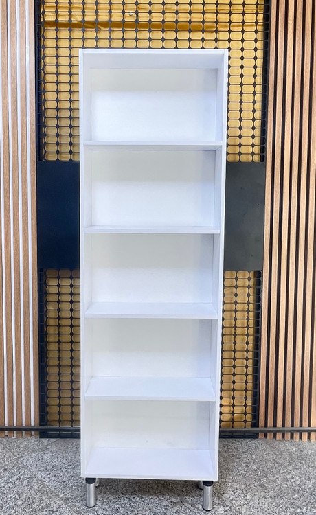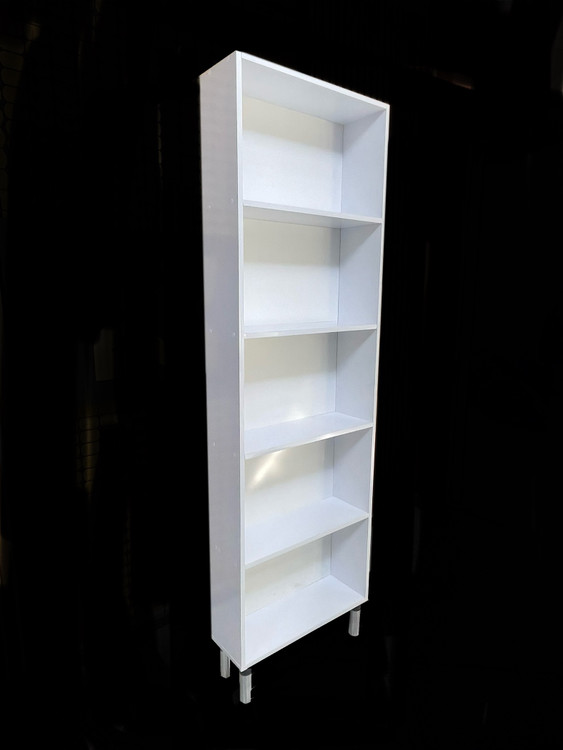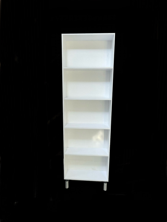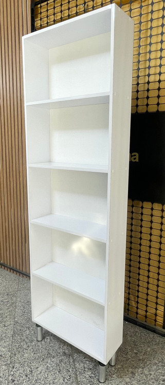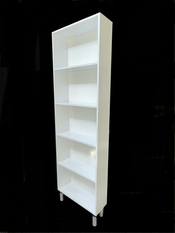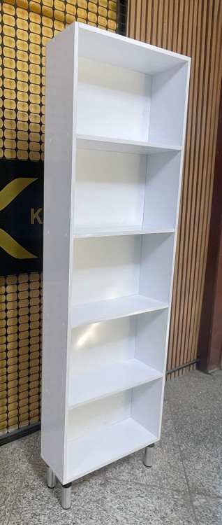 قفسه و کتابخانه سفید براق پنج طبقه – عرض ۶۰، عمق ۲۰ و ارتفاع ۱۹۰ سانتیمتر – باریک، مینیمال و مناسب فضاهای کوچک