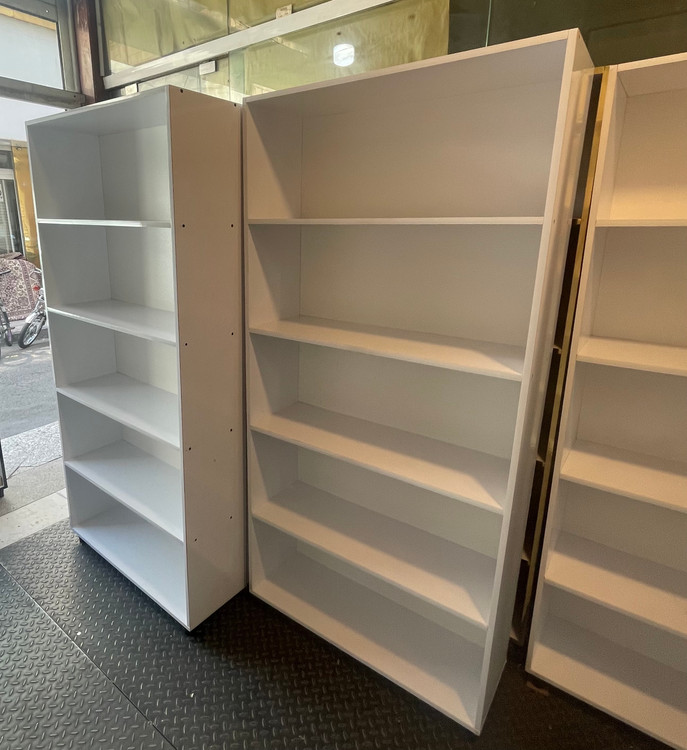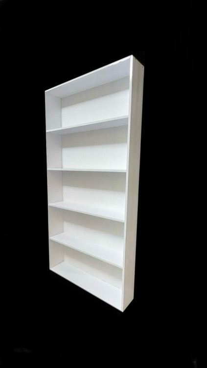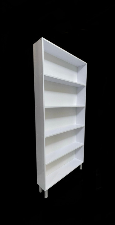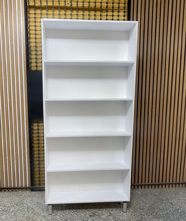 قفسه و کتابخانه سفید براق پنج طبقه – عرض ۹۰، عمق ۲۰ سانتیمتر – ساده، باریک و مناسب فضاهای مینیمال